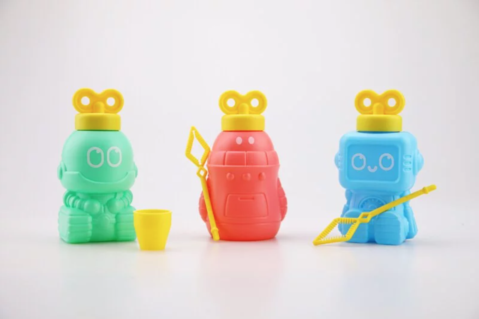 2. 將泡泡機器人的蓋子轉開,撕開封口膜