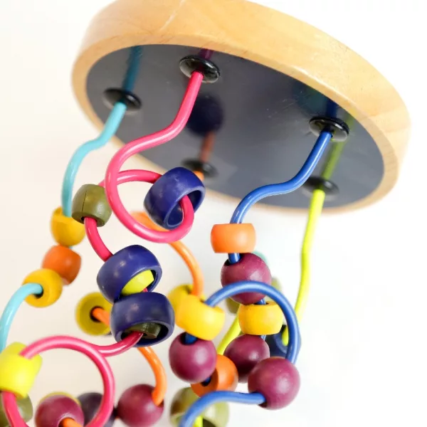華麗木質設計,五條迷宮路徑,自然的吸引孩子撥動11種不同顏色、形狀的彩色豆,幫助孩子手眼協調與巧緻性體驗。