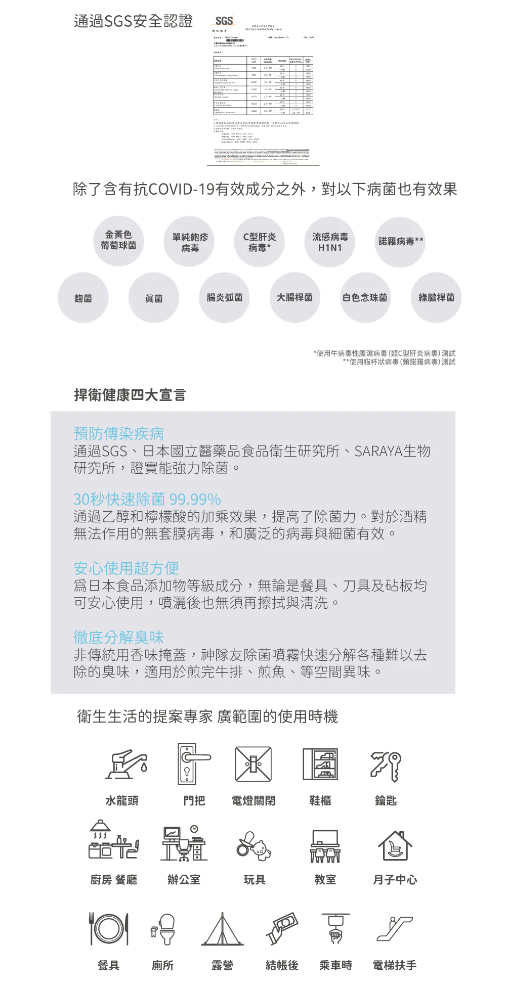 ★ 食器、廚房調理器具等 在意的地方使用,即可安心除菌 病毒OUT