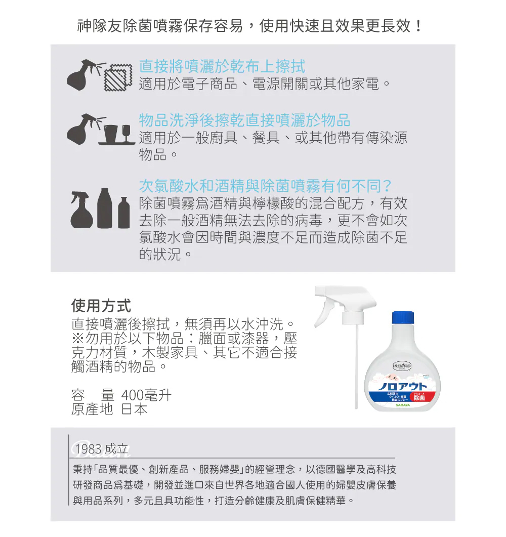 ▌噴灑後不須擦拭及沖洗